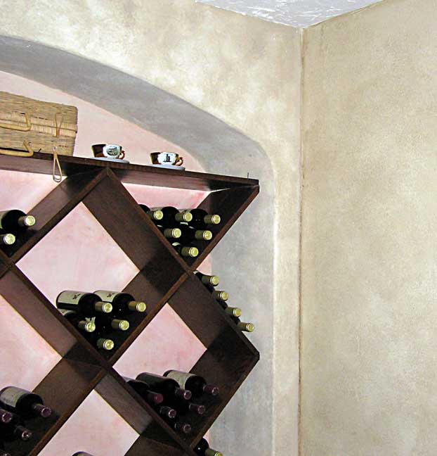 Classic veneziano plaster, custom color: distressed copper, satin finish.