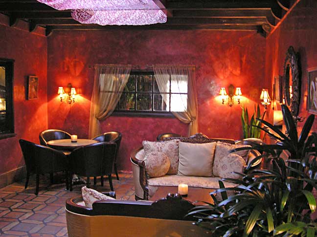 Classic veneziano plaster, custom color: red, burnished, high gloss wax.